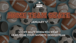Put on your favorite Jersey or piece of colorado team merch and come on down to McGregor Skate for fun with the whole family! Wearing Denver Team gear gets you 50% off of your skate rental and admission starting at 6PM.