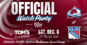 We’re hosting the OFFICIAL Avalanche Watch Party, presented by Coors Light, as the Avs take on the Rangers.