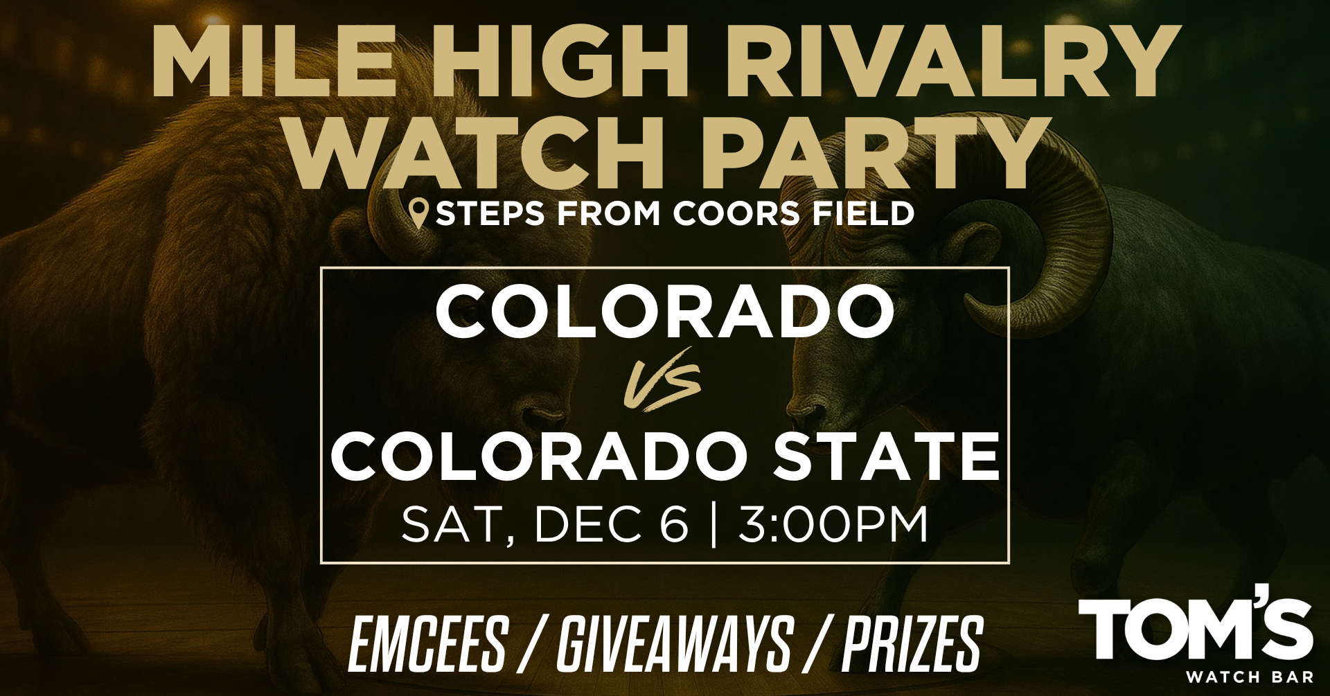 Mile High Rivalry Watch Party Saturday, December 6th THE MILE HIGH RIVALRY RETURNS! Colorado vs Colorado State goes down on December 6th, and we’re bringing… |