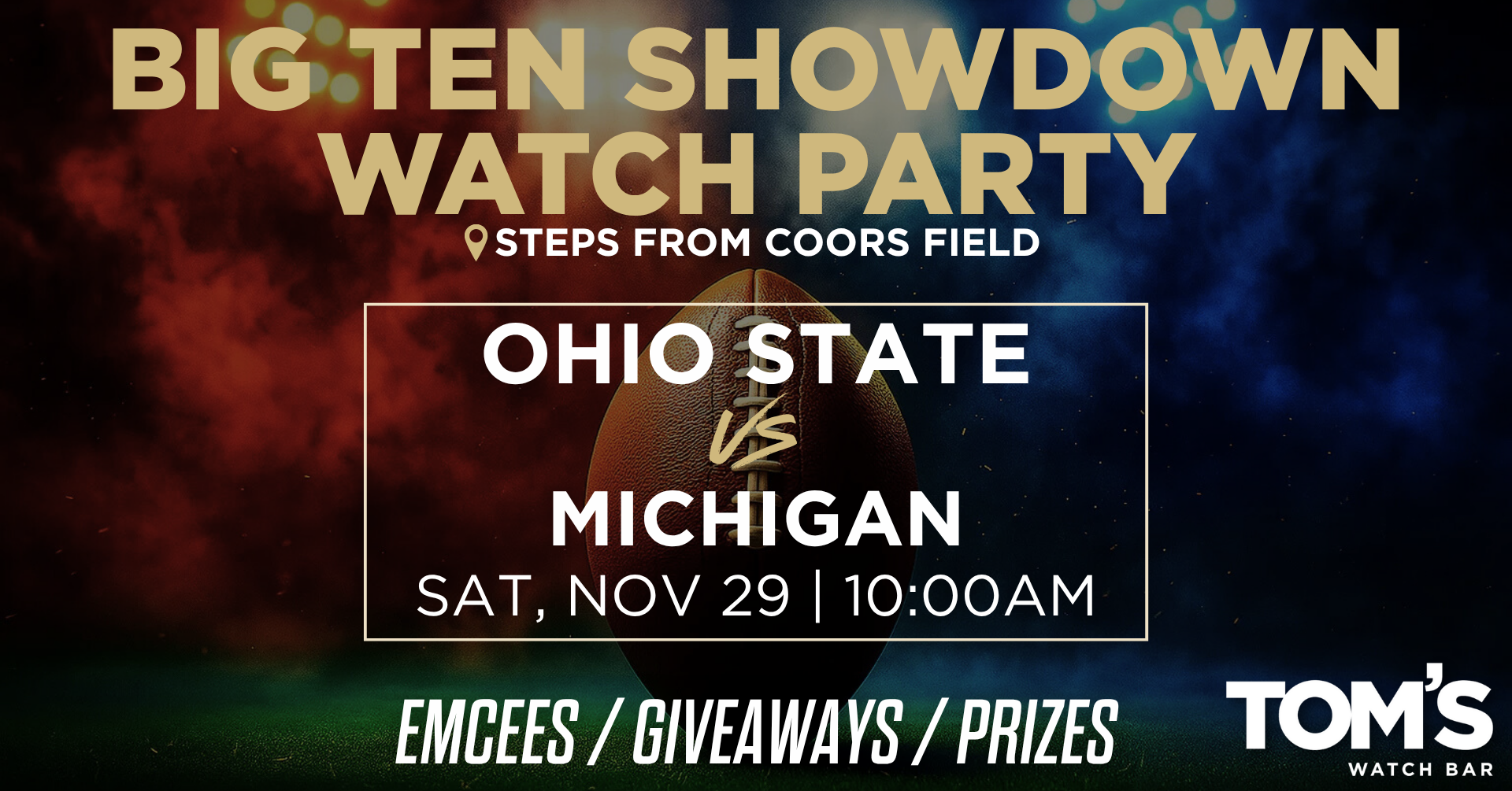 Big Ten Showdown Watch Party Saturday, November 29th at 10:00AM OHIO STATE vs MICHIGAN — IT’S ON The most iconic rivalry in college football takes…